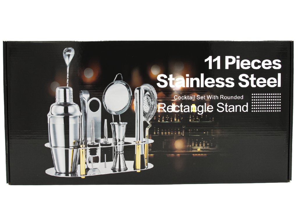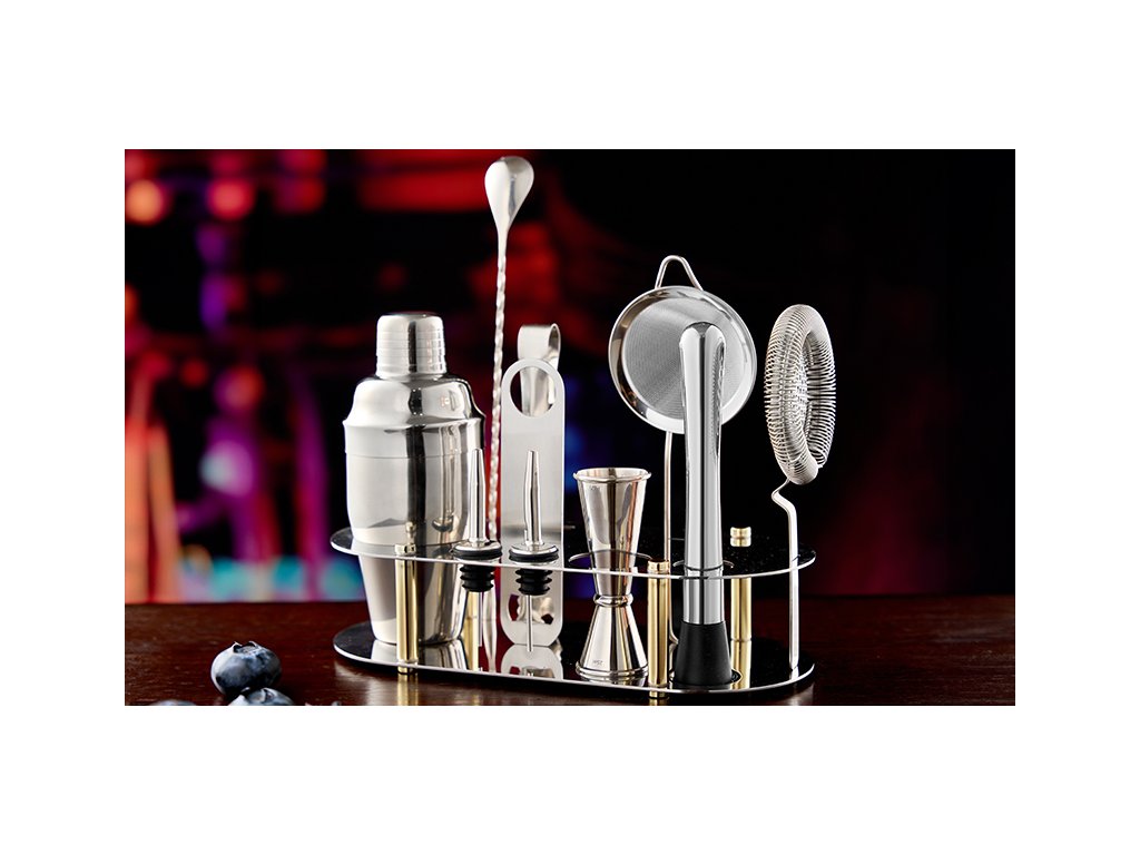 11 dílný Koktejlový Set z Nerezové Oceli se Stojánkem