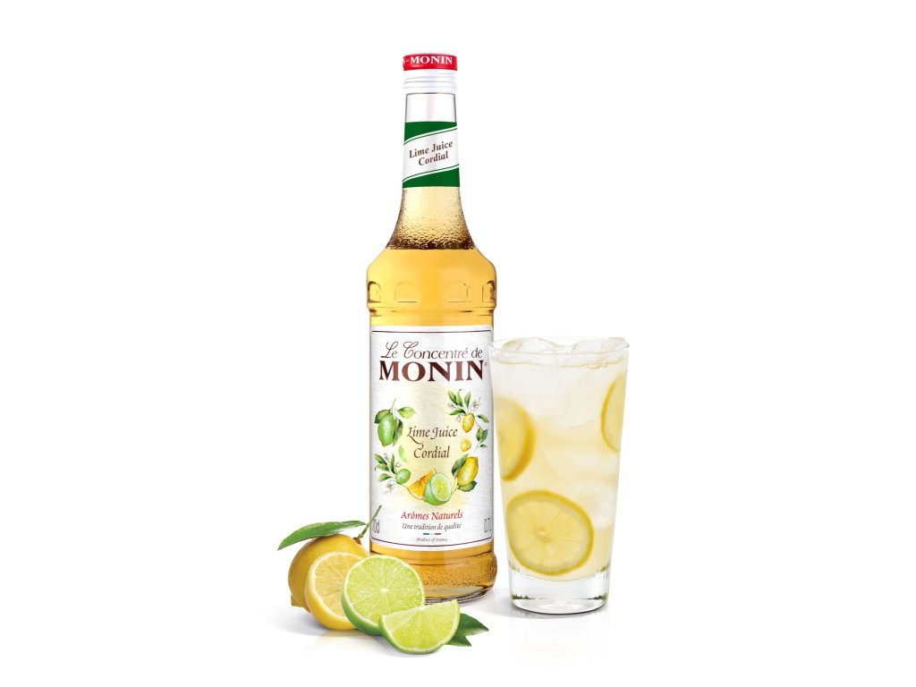 Koncentrát z limetkové šťávy, citrónové šťávy a cukru od francouzské značky Monin je ideálním do všech míchaných nápojů. Základem koktejlu Gimlet a hojně si přidává i do základu na Mojito.
