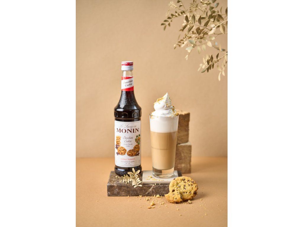 Zatímco vznik chocolate cookie, kdy pár kousků čokolády spadlo do hotového těsta na sušenky bez šance na rozpuštění, byl čirou náhodou, pak jejich celosvětová obliba již dílem náhody není. Tato lahodná pochoutka vyrobená poprvé v roce 1930 ve Spojených Státech si brzy získala mezi majiteli kaváren a coffee shopů pověst skvělého doplňkového sortimentu a tvůrce atraktivních zisků. I proto je dnes naleznete takřka všude. Monin Chocolate Cookie Sirup udělá z vašich drinků gurmetský zážitek. Je to příchuť, která umožní vytvořit svěží dezertní drinky a povýšit vaše nápojové menu mezi delikatesy.