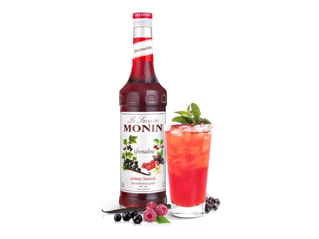 Grenadina je bezpochyby nejpoužívanější a nejvšestrannější příchuť a sladidlo v klasickém barmanství. Jakkoli to zní neuvěřitelně, nemá vůbec nic společného se sirupem z granátových jablek. Grenadina bývá součástí celé řady receptur. Propůjčuje jim hezkou červenou barvu a sladkou, lehounce trpkou chuť, která je velmi oblíbená mezi dospělými i dětmi. MONIN Grenadina sirup se chlubí příchutí červeného rybízu s nádechem vanilky a jasnou červenou barvou tolik žádoucí v nealko nápojích, cocktailech, dezertech, marinádách a několika dalších recepturách.