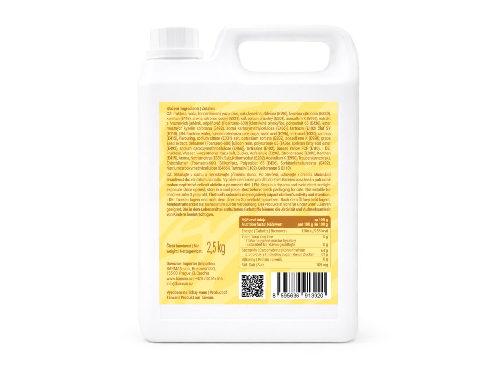 Sirup Boba Yuzu Med do Bubble Tea 2,5 kg