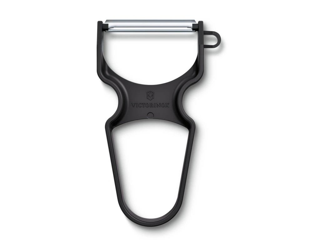 Plastová škrabka na ovoce a zeleninu s očkem pro snadné vytváření ozdobné kůry na koktejly. Výrobce - Victorinox Švýcarsko