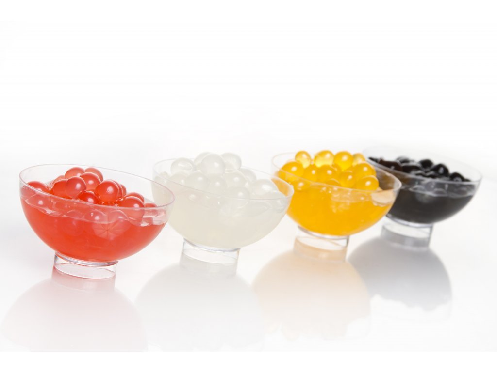Kromě praskacích kuliček nabízíme i ovocné želé, tapiokové perly, speciální řadu ovocných sirupů, ochucené prášky, potřebné pomůcky a stroje.